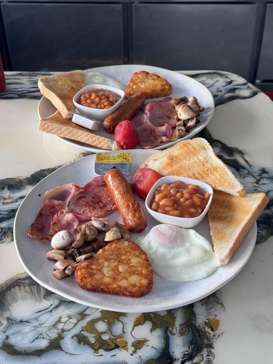 The kitchen is clearly tuned to satisfying practical morning appetites, with their Full English Breakfast drawing particular attention for being large, hot, and flavorful — bacon often singled out for its quality. Alongside breakfasts, wraps, burgers, and a range of coffee drinks (including sizable, well-poured lattes served hot or iced) make this a reliable spot for both early starts and casual midday breaks.